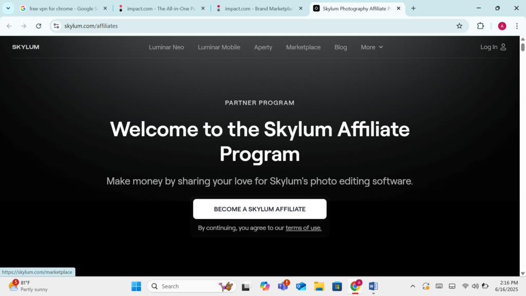 - High-Value Products: Skylum’s software is known for its user-friendly interfaces and professional-level results, making it easier for affiliates to confidently promote.